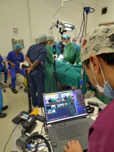 The initial part of our schedule was focused upon our evolving collaboration with VRiMS. Our hope is to create a SWIFTSS virtual classroom within their incredibly impressive experience. With cameras aplenty and even attached to the operating light, we filmed intra-operative hernia repair content. The first day dealt with more straightforward cases, showcasing ‘textbook technique’. The second was dedicated to more complex cases, reflecting our approach to provide useful content that mirrors the realities and challenges of hernia surgery in Africa. Things went really well and our massive thanks to Prof Jag Dhandar and Charlotte of VRiMS for their patience and expertise. We are looking forward to seeing how the material all comes together.